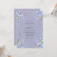 Delicate watercolor blossoms cascade in shades of lavender, violet, and soft blue, evoking a romantic and ethereal mood. Lush hydrangea and wispy wisteria create a dreamy floral arrangement that sets a tone of refined elegance.