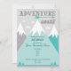 L'aventure personnalisée vous attend, Baby shower de montagnes Imprimable Invitation en Turquoise, bleu foncé et gris.