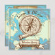 L'aventure Attend ! Territoire Bébé Inconnu Invitations sur le thème Nautilus avec fond de carte du monde, boussole, télescope nautique et ancre. Peut être utilisé pour une douche bébé garçon ou de thème neutre.