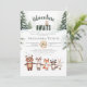 L'aventure vous attend ! Célébrez votre petit sur le chemin avec cette aventure mignonne animaux de bois Baby shower d'hiver d'aventure. Cette charmante aquarelle présente un ours, un cerf, un raton laveur, un renard, un lapin et une chouette entourés d'arbres enneigés dans une scène de forêt hivernale magique. Parfait pour un baby shower rustique, boisé ou hivernal, cette invitation allie charme forestier douillet et élégance saisonnière. L'aquarelle douce et les animaux en bois peints à la main font de cet invitation l'endroit idéal pour un garçon, une fille ou un baby shower neutre pour le genre. Que vous planifiez une merveilleuse campagne hivernale, une aventure boisée ou une fête inspirée de la nature, ce modèle personnalisable est facile à modifier avec vos détails d'événement. Créez un gardien Les invités vont chérir et donner le ton pour un baby shower plein de magie boisée, d'aventure et d'amour.