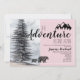 L'aventure commence à nouveau le baby shower rustique ours de bois saupoudré par mail invitation en rose pastel doux, avec un majestueux pin de la forêt et silhouette de montagne. Personnalisez pour votre baby shower. Voir la collection complète des objets pour cette conception à l'adresse suivante : https://www.zazzle.com/collections/let_the_adventure_begin_pink_rustic_woodland_bear-119031556317560521