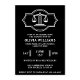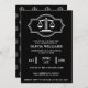 Une élégante invitation de remise de diplômes de l'école de droit. Avec ses échelles emblématiques de justice, symbole intemporel de la loi. Un design élégant et sophistiqué dans une palette de couleurs noir et blanc. Parfait pour tout diplômé en droit. Les modèles de texte sont faciles à customiser. Disponible sous forme de cartes imprimées ou en téléchargement instantané pour envoyer sur votre téléphone.