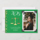 Celebrate the new juris doctorate graduate from law school with this gold and Green lawyer scales graduation announcement! Elegant with a vintage photo border and gold confetti accents! Perfect for anyone graduating law school!