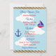 Ancrages rouges et bleus mignons, voiliers, bébé garçon et ours en peluche en tenue de marin. Invitations de douches pour bébé du garçon. Idéal pour un voilier, océanique ou marin.