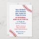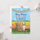 Bébé mignon et ours en peluche avec casquette de baseball, gant de baseball et baseball et chauve-souris assis dans l'herbe ensemble par un terrain de baseball. C'est un thème mignon pour le baby shower d'un garçon au printemps ou en été.