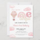 Cette rêveuse invitation de premier anniversaire présente une montgolfière rose flottant dans le ciel rose, aux délicates nuances de rougeur et de pastel. Une façon douce pour les invitations qui aiment de célébrer la journée spéciale de votre fille "Onederful".