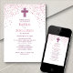 Un design moderne et contemporain de baptême pour leur grand jour! Le confetti rose et violet et la simple typographie donnent à ce design une ambiance classique et amusante.
