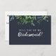 Carte de proposition Bridesmaid avec bordure de l'aquarelle et arrière - plan bleu marine.