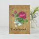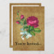 Rose fuchsia rose foncé vintage élégant et élégant de magenta avec un ruban bleu-clair sur un fond de papier âgé. Un joli et nostalgique cadeau pour le jour de mère, grand-maman ou à toute occasion !