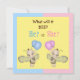 Adorable personnalisé Qu'est-ce que BEE? Baby Gender Reveal party Invitations Baby Shower avec de mignons bébés abeilles sur un arrière - plan jaune avec un cadre joli de taches roses, bleues et blanches. Le texte est entièrement personnalisable pour répondre à vos besoins et les objets de conception peuvent être déplacés et redimensionnés. Les invitations sont illustrées des deux côtés. Un autre produit amusant de la carte graphique Super.