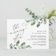 Conception Romantique Moderne et Magnifique, avec un thème d'aquarelle de feuilles d'eucalyptus, Annonce de Mariage en fuite, Carte d'invitation (Le lendemain matin). C'est parfait pour votre réception de mariage et votre fête de célébration après le mariage. Ajoutez les détails de votre célébration de brunch / dîner de mariage en fuite.