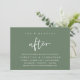 Annoncez votre bonheur éternel avec style grâce à notre carte d'invitation de brunch après mariage (lendemain de mariage) moderne à motif script (thème de vert sauge). Notre carte d'invitation de célébration de brunch "Happily Ever After" est idéale pour les couples qui ont décidé de s'enfuir et qui souhaitent organiser une fête pour célébrer leur union. Avec son design sophistiqué mais ludique, cette invitation est sûre de donner le ton pour un événement inoubliable. La carte d'invitation présente un design minimaliste, ajoutant une touche d'élégance intemporelle à votre célébration. Conçue par TeeshaDerrick