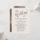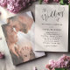 Faites une impression durable avec cette élégante invitation de mariage, mettant en vedette "Le Mariage de" dans un script romantique magnifiquement jumelé avec une police audacieuse et traditionnelle pour un look intemporel et sophistiqué. Le design monochrome épuré respire la classe et le raffinement, parfait pour une célébration contemporaine ou classique. Au contraire, personnalisez avec la photo et le monogramme de votre couple préféré, superposés d’une douce couverture blanche, ajoutant une touche unique et sentimentale à votre papeterie mariage. Cette invitation allie le style et le sens sans effort, ce qui en fait un parfait souvenir pour votre journée spéciale.