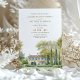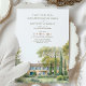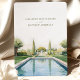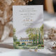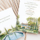 Invitation vos invités à votre journée spéciale avec la beauté sereine de cette carte d'invitation de mariage de Provence Garden. L'avant de la carte présente un jardin d'eau tranquille avec des arbres luxuriants et une piscine réfléchissante, rendue dans des tons délicats d'aquarelle vert sauge, bleu ciel et jaune doux. L'arrière présente une charmante maison de campagne française entourée de jardins verdoyants, peints dans une palette d'aquarelle douce similaire. Cette invitation saisit parfaitement l'amour et l'élégance d'un mariage de campagne en Provence, chaque détail soigneusement conçu pour donner le ton d'une fête mémorable.