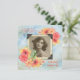 Un beau, vintage collage d'aquarelle de Victorien-style dans bleu et orange, avec des fleurs, des rayures classiques et des cadres antiques. Remplacez la photo de portrait témoin et customisez le texte témoin avec vos propres pour une conception personnalisée.