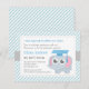 Célébrez l'étape importante d'accomplir le jardin d'enfants ou l'école primaire pour des enfants avec une fête de remise des diplômes ! Cet invitation avec un petit éléphant mignon de bébé avec un casquette carré d'universitaires bleus est parfait pour des parents, des professeurs et des écoles prévoyant une fête de remise des diplômes ou une cérémonie pour les enfants de graduation ! L'éléphant s'adapte parce qu'ils sont l'un des animaux les plus intelligents. Les rayures bleues et par blanc inclinées chiques et élégantes modèlent l'arrière - plan. Personnalisez facilement avec vos détails de partie.