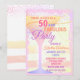 Invitez vos 50 et invités fabuleux de fête d'anniversaire dans le style avec cette invitation plate de carte. Rayures de cette aquarelle de caractéristiques de conception dans rose et blanc avec un verre de martini arrosé avec les confettis en pastel. Vos détails de partie sont dans rose, pourpre, le corail et la violette pour que vous personnalisiez. Conçu par le ©Tim de renommée mondiale Coffey d'artiste.