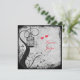 Cette faire-part de mariage rouge et grise rosâtre a une paire de inséparables et une cage ornée d'oiseaux sur un arrière - plan floral gris grincheux. Si vous avez besoin d'objets correspondants, veuillez envoyer votre demande par courriel à niteowlstudio@gmail.com.