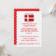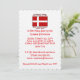 Invitation à une fête d'anniversaire avec le drapeau danois et les mots LE SANG DES VIKINGS COULE DANS MES VEINES ET PARFOIS LEUR BIÈRE. Les détails de la fête au recto peuvent être personnalisés. Le verso est vierge pour votre message spécial, votre direction ou tout ce que vous souhaitez.