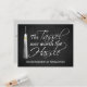 Faire-part de diplôme universitaire, avec une formulation classique classique formelle et un thème amusant. Le goûter valait le coup. Arrière - plan de style toile noire foncée avec un goût blanc et or et des lettres cursives. Un gardien personnalisé pour le diplômé. Tous les dessins © www.CustomInvitesOnline.com