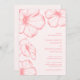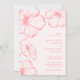 Faire-part de mariage moderne avec un design floral simple mais élégant avec de grandes fleurs sur le dessus et le côté gauche. Les détails de votre événement sont sur le côté droit.