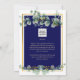 Nous vous présentons notre papeterie de mariage et nos articles assortis sur le thème rustique bleu marine et verdure, mettant en vedette de superbes feuilles d'Eucalyptus aquarelles dans des nuances de sauge et de vert émeraude rehaussées de détails dorés sur un fond bleu marine époustouflant. Ce design de feuillage botanique fait partie d'une collection plus vaste qui comprend des invitations de mariage, des invitations à la douche de la mariée, des faire-part, des cartes de réponse, des pancartes de mariage, des plans de table, et plus encore. Consultez la page de la collection pour voir toutes les options disponibles.