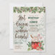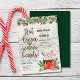Belle et enchanteresse invitation à la douche nuptiale d'hiver avec script de style manuscrit moderne, sainte et baies, chocolat chaud ou cacao, marshmallows et sucre de canne, arbres à feuillage persistant et paysage enneigé. Cette délicieuse invitation donne une scène d'hygge parfaite. Disponible en téléchargement numérique ou imprimé. Conception par LeahG de budgetweddinginvites.com