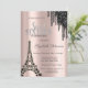 Un Sweet 16 moderne, chic et glamour avec des touches de noir brillant, et une tour Eiffel noire sur fond d'or rose.
