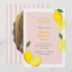 Bright and cheerful lemon graduation invitation with a soft pink background and fresh citrus illustrations. This stylish design fits perfectly with trending fruity, pastel, and floral-inspired graduation party invites. Ideal for spring and summer celebrations, and easy to personalize for a fresh, modern graduation party look. Original artwork by Caroline Bonne Muller.