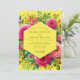 Celebrate your special day with this stunningly vibrant botanical design. A cheerful lemon-yellow background provides a brilliant canvas for lush, painterly magenta and fuchsia dahlias. Abundant green foliage and unique succulents add depth and a touch of the tropics to this artistic arrangement.