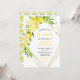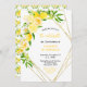 This fun and whimsical birthday party invitation features watercolor citrus lemons and foliage on a gold geometric frame. The text combines handwritten script and serif fonts for a stylish and modern look. This is perfect for a summer rustic birthday party.