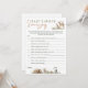 RÉPONSES :<Q1>Premier sourire (30) Tenir le bébé (25) Premiers pas (20) Premier mot du bébé (15) rire du bébé (10)<Q2>faim (5) Besoin d’un changement de couche (4) fatigué (3) Souhaite attention (2)<Q3>Pleurer le bébé (50) Changements de couche (25) bébé (15) Inquiétant (10)<Q4>Sommeil (40) Cry (30) Mange (20) Cop (10)<Q5>Céréales (40) Mashed bananes (25) Mashed patates douces (20) Applesauce (10) Peas (5)<Q6>Prises électriques (35) Cecarmoires (2) 5) Escaliers (20) Coins pointus (10) Portes (10) (45) Lingettes (30) Bouteilles (15) Vêtements supplémentaires (5) Pacifier (5) (35) Premier mot (30) Première dent (20) Crawling (10) Assis (5)<Q7>Bébé Yoda (40) Maggie Simpson (30) Jack (Les Incroyables) (20) Stewie Griffin (10)<Q8>"Twinkle, Twinkle, Little Star" (5) "Rock-a-Bye Baby" (4) "Hush, Little Baby" (3) "Brahms' Lullaby" (2)) Présentant notre étude de baby shower sur les animaux des bois dit carte - parfait pour une célébration mignonne et fantasque! Doté d'un thème moderne de forêt aquarelle avec d'adorables créatures comme le renard, l'ours brun, le lapin et le cerf, il est parfait pour une douche sans rapport avec le genre. Ce design bohème crée une scène douce et simple avec son paysage naturel d'arbres verts et de chouettes et d'oiseaux classiques. Idéal pour accueillir un petit garçon ou une petite fille, cette carte de jeu est aussi charmante qu'intemporelle. N'hésitez pas à poser des questions concernant la conception du produit, nous sommes heureux de vous aider !