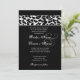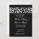 Cette conception avec son empreinte de léopard noir et blanc jetant un coup d'oeil par derrière un arrière - plan noir mélange les éléments contemporains et classiques, et fait un faire-part de mariage élégant. Cette conception est actuellement décrite sur un papier métallique de la meilleure qualité hued de glace qui donne à votre invitation un miroitement et un éclat chauds. Vous pouvez expérimenter avec différents types de papier pour obtenir juste le regard que vous voulez. Si vous voulez une finition brillante (qui est seulement appliquée à la partie antérieure de votre invitation) choisissez les papiers de toile, de base ou métalliques. Si vous voulez une finition mate, choisissez tachetée, senti, ou réutilisée. Cette invitation vient avec une enveloppe classée par A7.