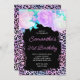 Créez votre propre arc-en-ciel irisé couleur rose et noir empreinte de léopard 21e anniversaire de célébration 5x7 invitations. Votre invitation personnalisé est placé sur une brosse à brosse à grunge noire recouverte rectangulaire. Un design safari animal à glaces girly avec un style holographique de style vintage art numérique de fleur de parties scintillant. Customisez le script de calligraphie monoline ou le style classique de toutes les polices casquettes couleur, style et taille. L'art numérique dans ce design imprime à plat comme une photo.