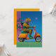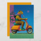 Une oeuvre d'art surréaliste et vibrante avec un léopard chevauchant un scooter orange vif contre un ciel bleu vif. Avec des roses roses dans l'arrière - plan et un foulard violet élégant, cette scène mêle la faune et la fraîcheur urbaine, créant un visuel fantasque et attrayant.