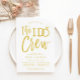 Une réunion est prévue pour l'équipe Ido. Faites savoir directement à tous les membres de votre mariage que leurs services sont nécessaires pour un dîner de répétition avec ces cartes d'invitation ludiques et formelles. Le design comporte les mots "I do team" dans un style de script élégant et moderne. Le mot 'do' comporte une bague en diamant brillante à la place de la lettre 'O' pour signifier le mariage de la mariée et du marié. Ce design est entouré de spots pour vos informations uniques et les détails du texte.