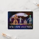 Une Earthling aux cheveux roux tient main dans la main et main dans la tente avec ses amis aliens tandis qu'une soucoupe volante sonne au-dessus d'eux dans cette illustration de science-fiction originale de Richard H. Fay.