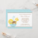 Une invitation à baby shower douce avec un joli trio d'animaux de la jungle niché dans un parapluie à points de polka bleu.