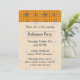 Cette invitation est faite d'un arrière - plan orange vif qui crée une base parfaitement inspirée de l'Halloween pour un motif répétitif de web crawling noir avec des araignées. Ces araignées, modelées sur la fausse veuve, présentent un crâne blanc vif sur leur abdomen et d'autres marques blanches sur leur corps et leurs jambes. La partie inférieure de la carte contient un exemple de texte que vous pouvez customiser pour créer un invitation personnalisé pour votre partie éffrayante.