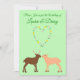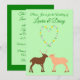 Cette belle faire-part de mariage présente un cerf mâle et femelle qui ressemble à un couple amoureux. Le cerf mâle (buck) est brun foncé et a de grands bois, le cerf femelle (doe) est brun pâle avec des taches blanches. Il y a un coeur au-dessus du cerf en fleurs marguerites blanches et en beignets jaunes. Il y a du texte personnalisé à l'arrière pour que vous puissiez inclure tous les détails.