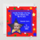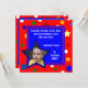 Cette invitation lumineuse et colorée est parfaite pour vos enfants le prochain anniversaire ! Le design présente un arrière - plan rouge vif avec des étoiles de différentes tailles et des tons rouges, bleus, verts et jaunes. Il y a aussi des pois blancs. Au centre se trouve un carré bleu vif aux reflets rouges. Le texte en caractères blancs peut tous être customisé selon vos besoins. Il y a une étoile dans le coin inférieur gauche de la photo de votre enfant. La zone de la photo en étoile est recouverte d'un cadre bleu foncé. Le revers de l'invitation a le même arrière - plan rouge avec étoiles motif. Il y a une zone bleu vif pour le texte en caractères blancs. Encore une fois, tout le texte peut être customisé par vous! Ces étoiles Couleurs primaires Les invitations à l'anniversaire de la photo pour enfants sont parfaites pour le premier anniversaire du bébé ou pour les enfants d'âge préscolaire.
