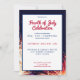Invitation de célébration 4 juillet moderne. Personnalisez ce modèle d'invitation 4 juillet fête pour votre fête d'indépendance avec vos amis et votre famille. Caractéristiques feux d'artifice arrière - plan et design élégant