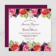 Devant : Un arrière - plan blanc. Décoré de fleurs bordeaux foncé, roses, violettes, rouges, roses avec quelques baies jaunes. Modèles pour Vos noms et les détails mariages. Les noms sont écrits avec un script de style écrit à la main, des lettres de couleur boucane. Dos : arrière - plan de couleur bordeaux foncé.
