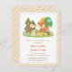 Cette invitation de baby shower de créatures boisées mignonnes, joyeuses et colorées est un design qui va mettre un sourire sur le visage du destinataire. Les invitations comprennent une variété d'animaux boisés qui comprennent un oiseau sur l'arbre, un cerf, un renard, un lapin qui saute, un écureuil avec la noix de cacre et un hérisson. Parfait pour accueillir les bébés au printemps avec les arbres, marguerites blanches, fleurs rouges, champignons et animaux de la forêt. La page inverse est coloré lignes inclinées motif. Personnalisez facilement avec les détails de votre fête. Convient aux mamans pour s'attendre à des bébés filles et garçons !