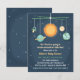 Cette invitation de baby shower vient avec une torsion de thème de l'espace des jouets classiques de huche de bébé ! Elle a une tétine et des planètes de bébé balançant et remplaçant les jouets traditionnels par le juste du soleil au milieu. Bel arrière - plan de galaxie d'étoiles. On l'inspire par la façon dont une nouvelle mère trouve soudainement son monde tournant autour de elle nouveau-né comme le soleil ! Personnalisez avec vos détails de baby shower dans les modèles des textes fournis. Palette de couleurs d'orange, de jaune, bleu et vert.