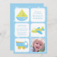 L'invitation de ce garçon à la fête d'anniversaire de la photo a un thème de voyage pour les garçons mignons. Trois moyens de transport différents sont représentés : un voilier, un avion et un camion à benne. Vous pouvez facilement customiser les informations de la fête dans les 3 boîtes différentes avec les vôtres. En bas à droite, vous pouvez ajouter votre propre photo. © Le Clip De L'Artisanat