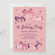 Des chevaux mignons roses, violets et blancs sont créés en motif pour faire l'invitation équestre parfaite pour une fille et un amoureux de cheval. La couleur Arrière - plan est facile à customiser !