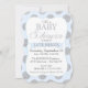 Pois argenté de parties scintillantes sur l'arrière - plan bleu avec le design de carte bleu d'invitation de baby shower de bannière.