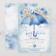 Invitation pour une Baby Shower Parasol Bleu Fleurs Bleues Les Pluies d'Avril Amènent des Fleurs de Mai
