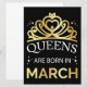 'Les Reines Naissent En Mars' citation cool avec une illustration de couronne pour les filles d'anniversaire.